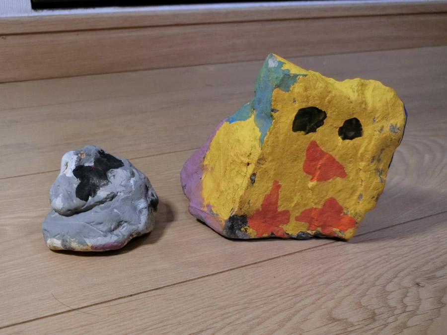 並行してつくったオブジェらしきもの。小枝の「ブイ・ブイ」が何を意味しているのかは、きいてません。